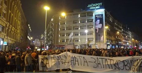 Protesto yürüyüşü Makedonya hükümet binası önünde devam etti.