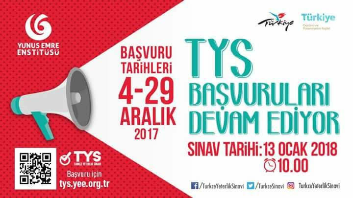📢Türkçe Yeterlik Sınavı (TYS) 13 Ocak 2018 tarihinde Üsküp Yunus Emre Enstitüsü'nde yapılacaktır.