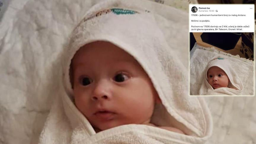 Ülkedeki en aktif yardım kuruluşlarından "Pomozi.ba", sosyal medya üzerinden Arslan bebeğe yardım çağrısında bulunurken, çağrının kısa sürede 30 bine yakın paylaşım alması dikkati çekti.